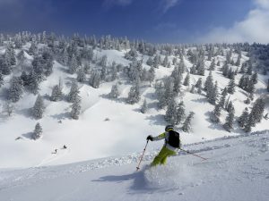 2日間の降雪の後、山は新雪!青空のもとパウダーを堪能しました。