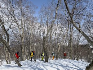 最後はブナ林の中を縫うように滑ります。