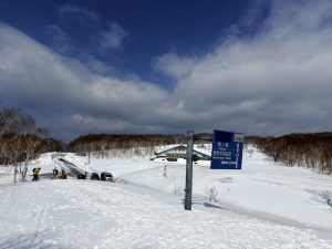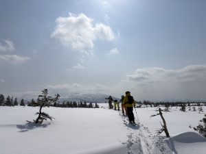 初日から快晴。足慣らしの予定でしたが早速天気がいいので少しだけ歩いてゲレンデではなくスキールートへ出ることにします。